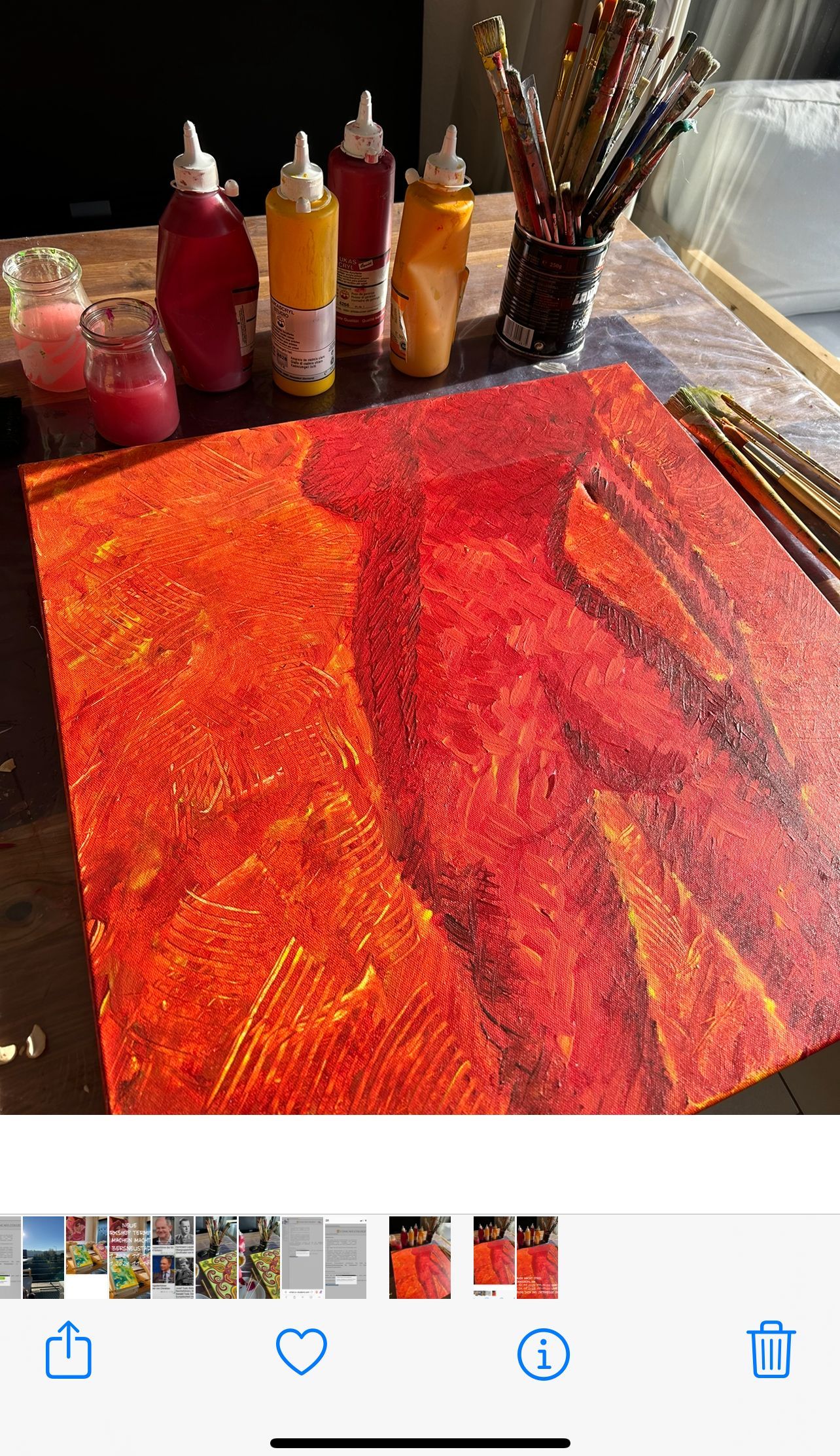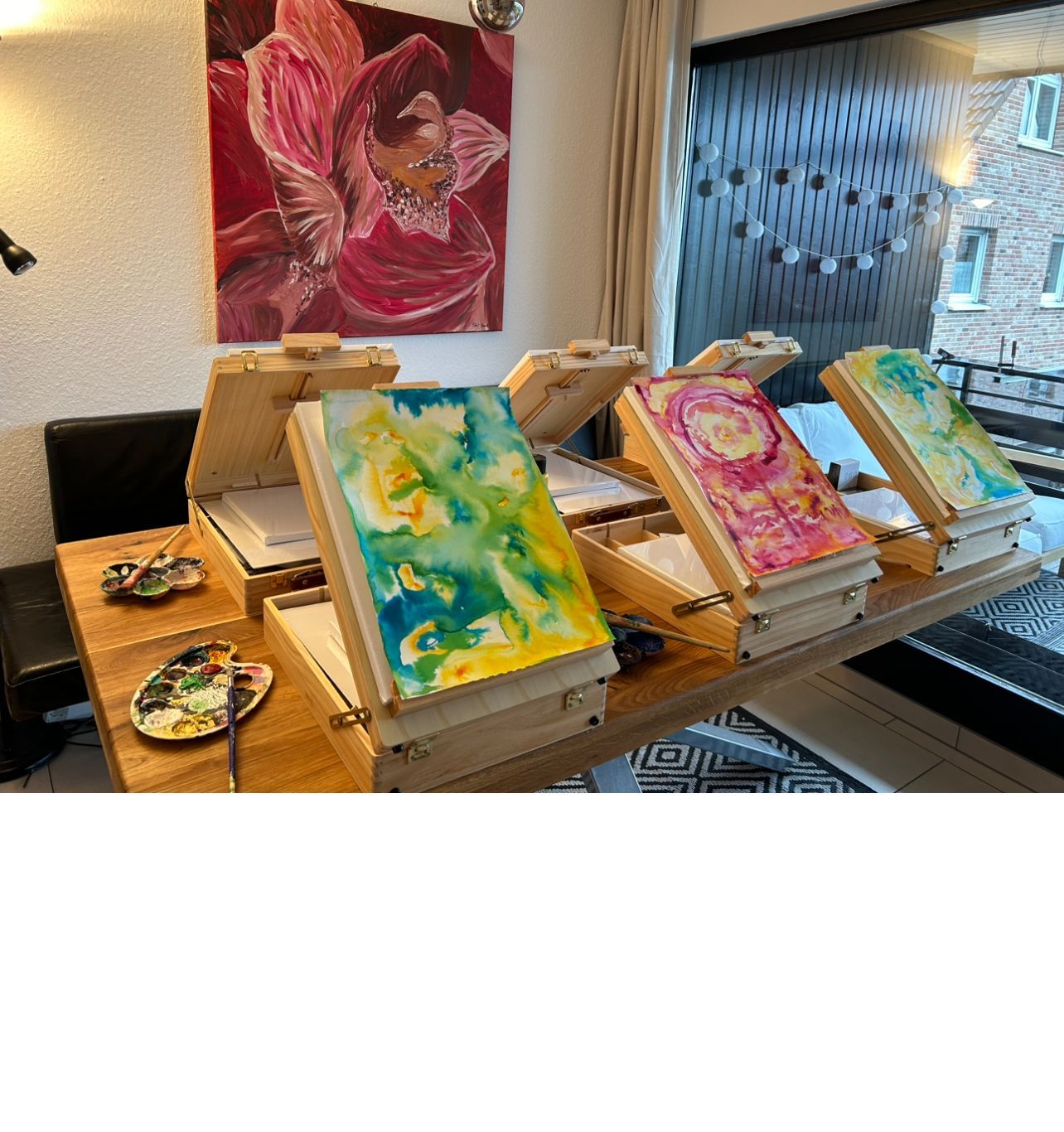 du hast mir geholfen, meine Angst vor dem Malen zu überwinden. Dank deiner einfühlsamen und unterstützenden Art konnte ich mich zum ersten Mal überwinden und auf das Malen einlassen und habe viel Freude daran gefunden. Du schaffst eine angenehme Atmosphäre, in der man sich wohlfühltund kreativ sein kann. Ich bin Dir sehr dankbar für diese Positive Erfahrung und habe mir auch schon Malutensilien für Zuhause besorgt.